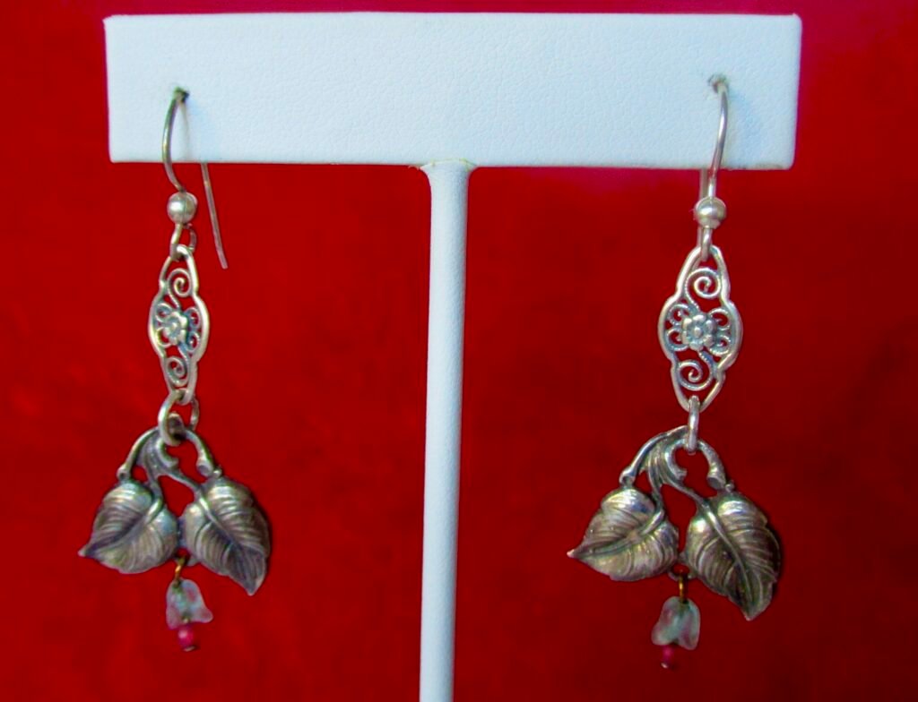 Pair of Antique Sterling Silver Earrings With Pink Frosted Cameos