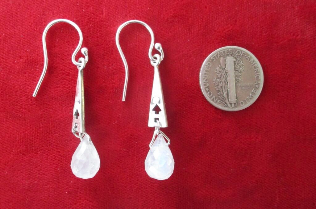 Pair of Antique Sterling and Marcasite Moonstone Earrings/Hippie/Boho