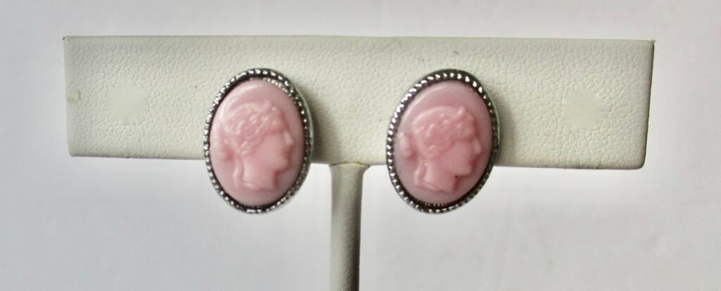 Pair of Vintage PInk Glass Cameo Clip-Back Earrings