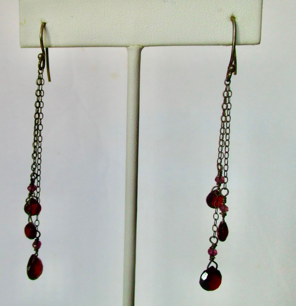 Pair of Vintage 2 3/4-Inch Sterling Silver Earrings With Faceted Garnets and Tiny Amethysts