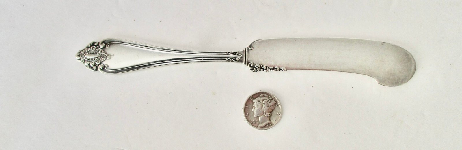 Antique silver plated spreading knives. Marked ‘Rogers & Hamilton”.  Will coordinate beautifully with other antique patterns