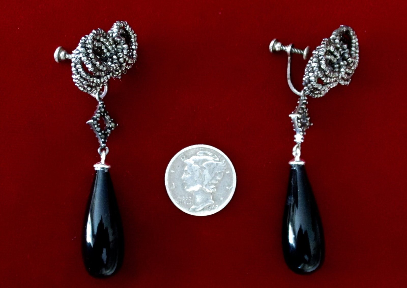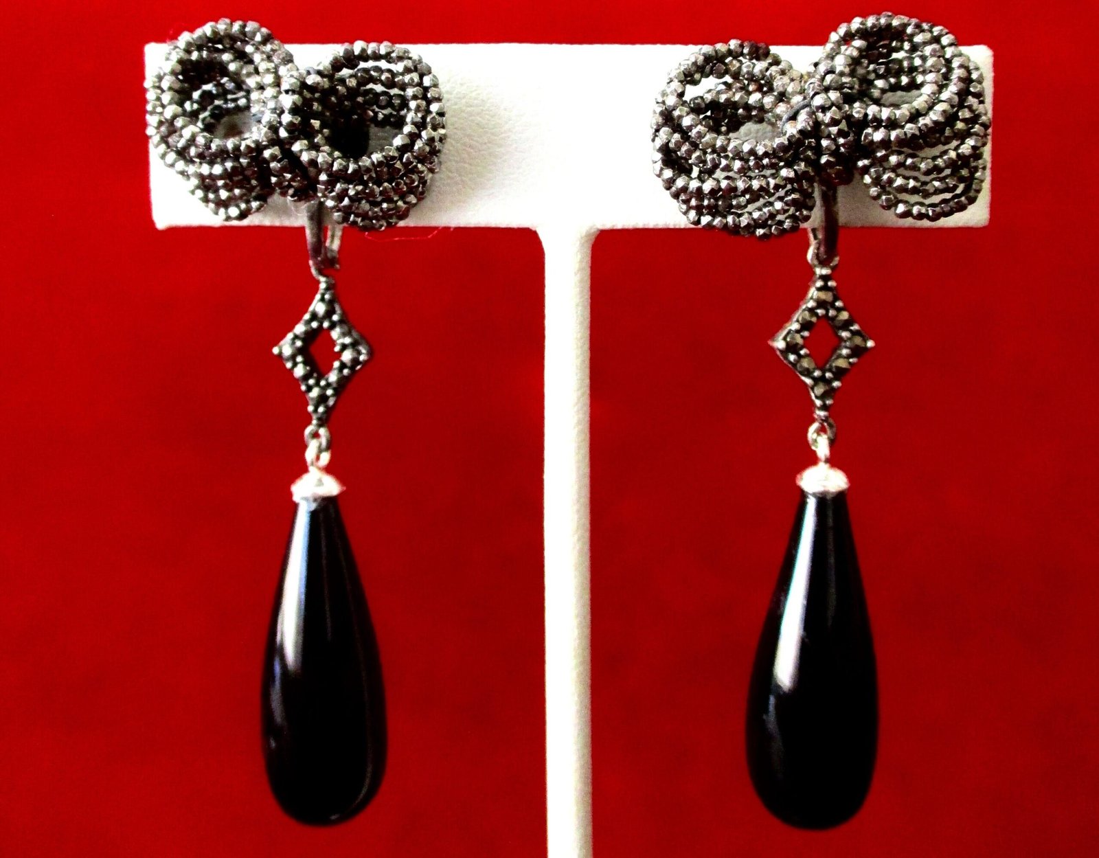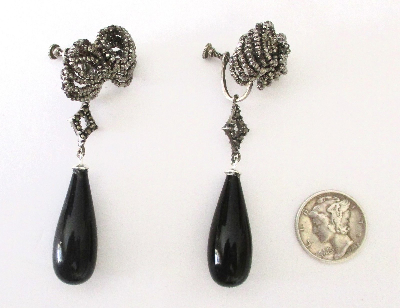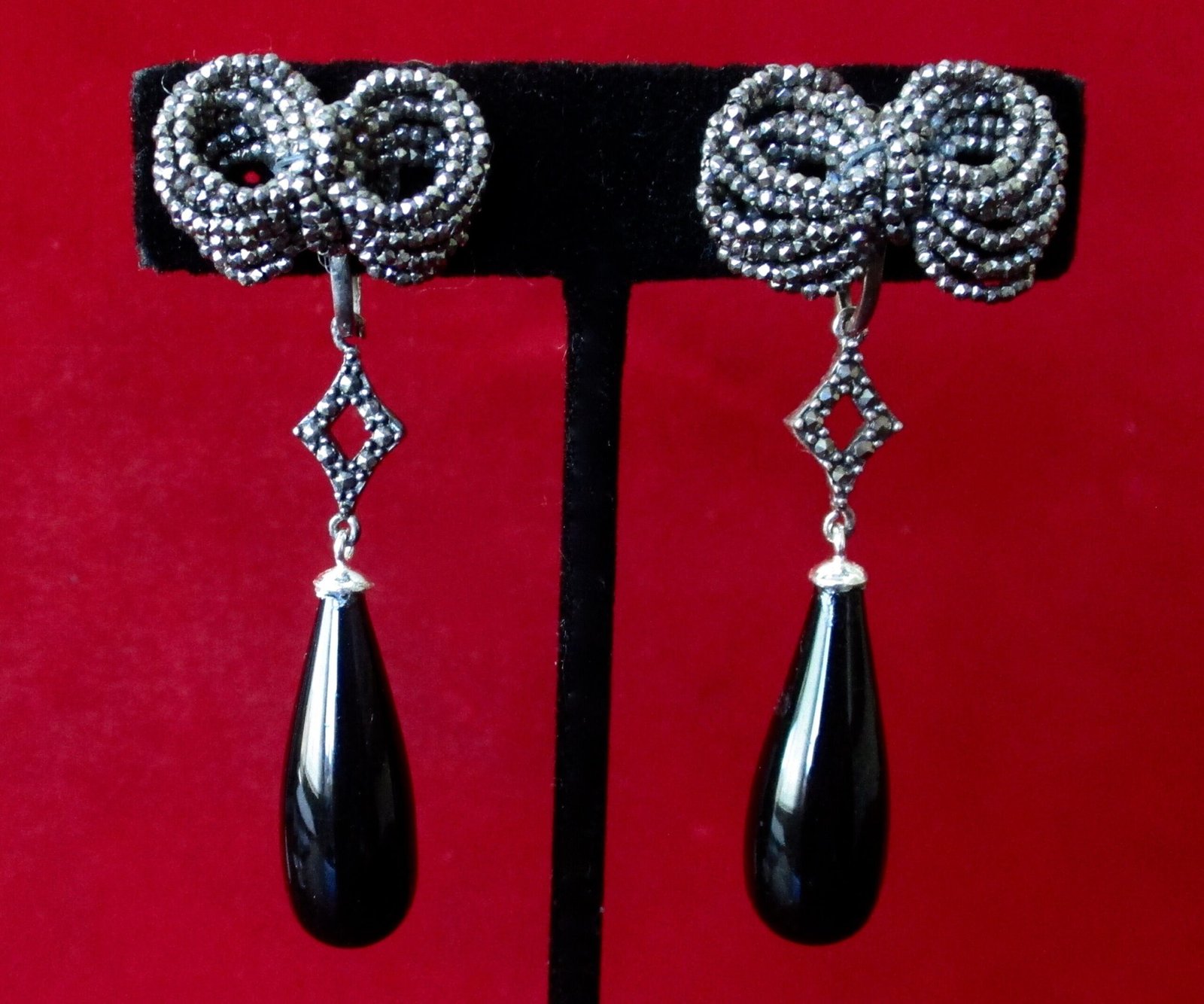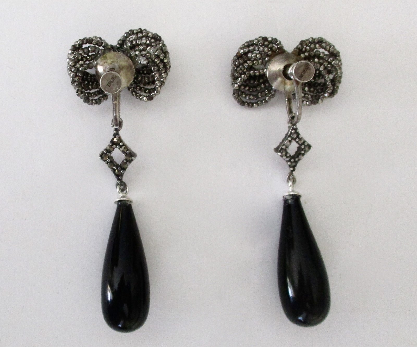 Each earring measures 2 1/2 inches long 1 inch wide, at the bow Total weight for the pair is 9.9 g. 6.3 dwt