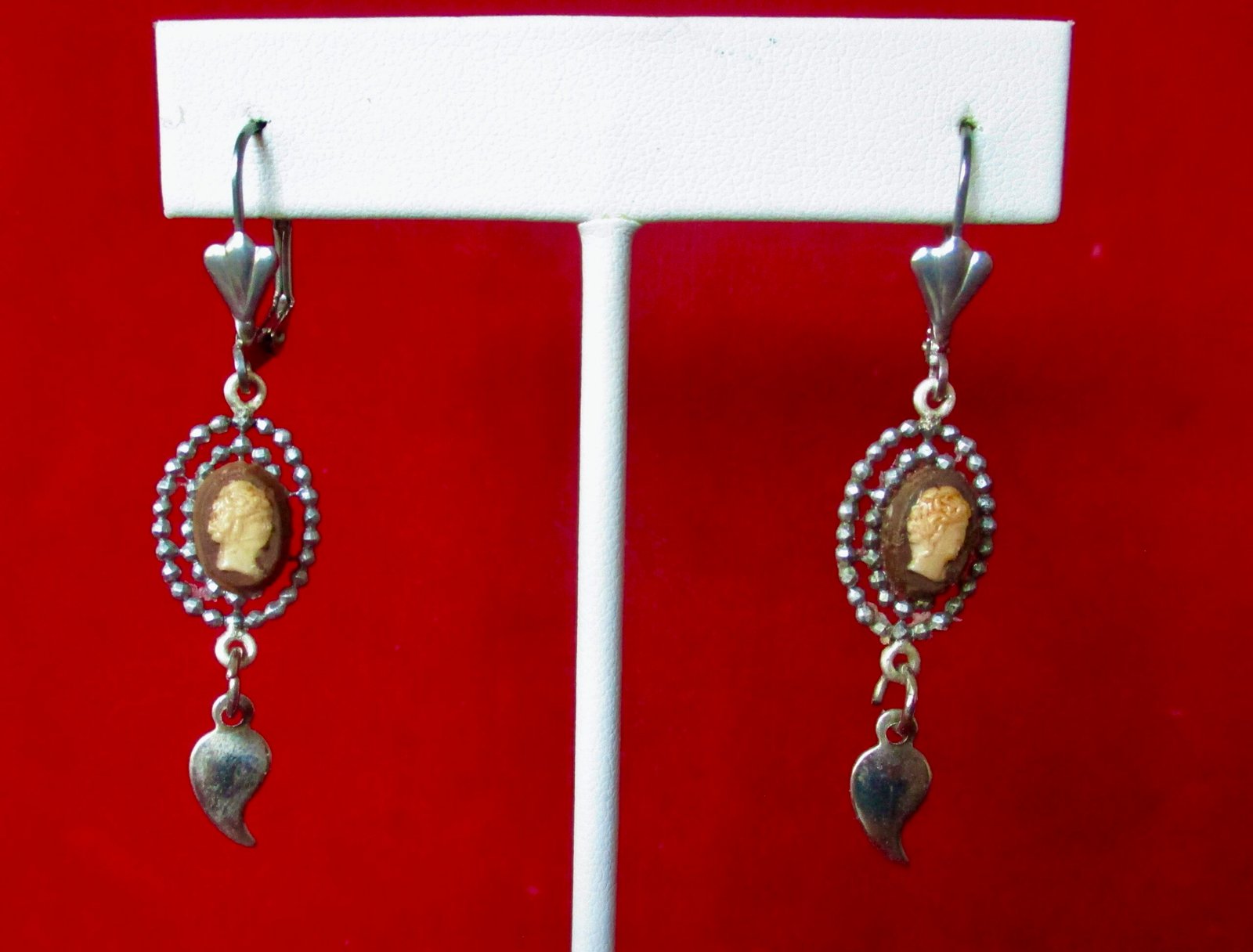 New-old stock. Antique earrings that have never been sold or worn. Reverse etched crystal cameos with new stainless steel ear wires. The antique components of these earrings were first assembled in the 1980’s. The round garnets are natural