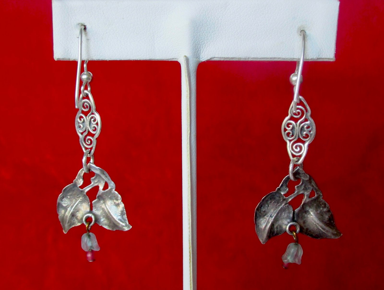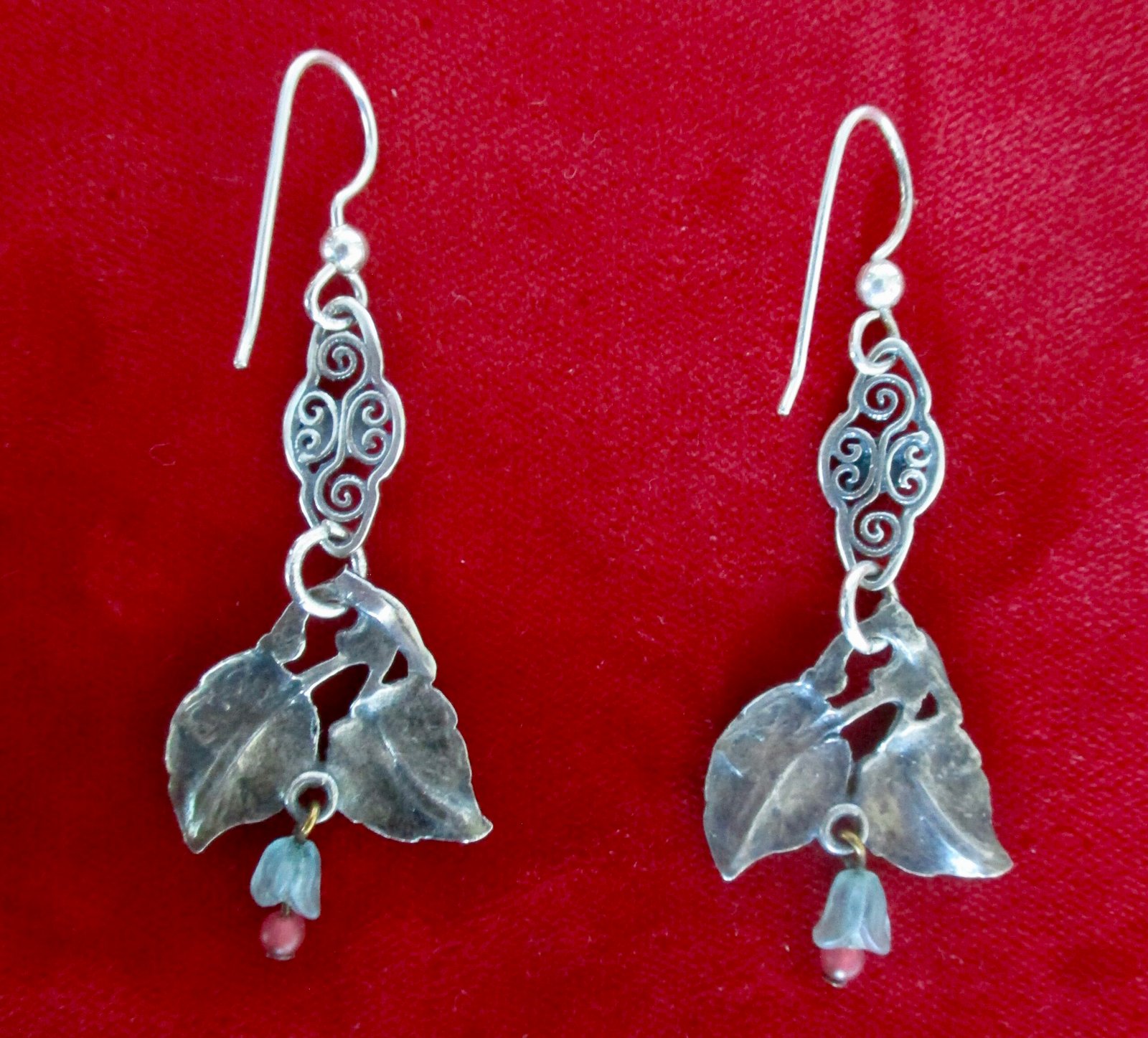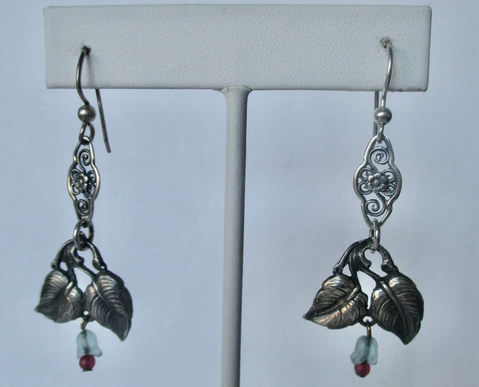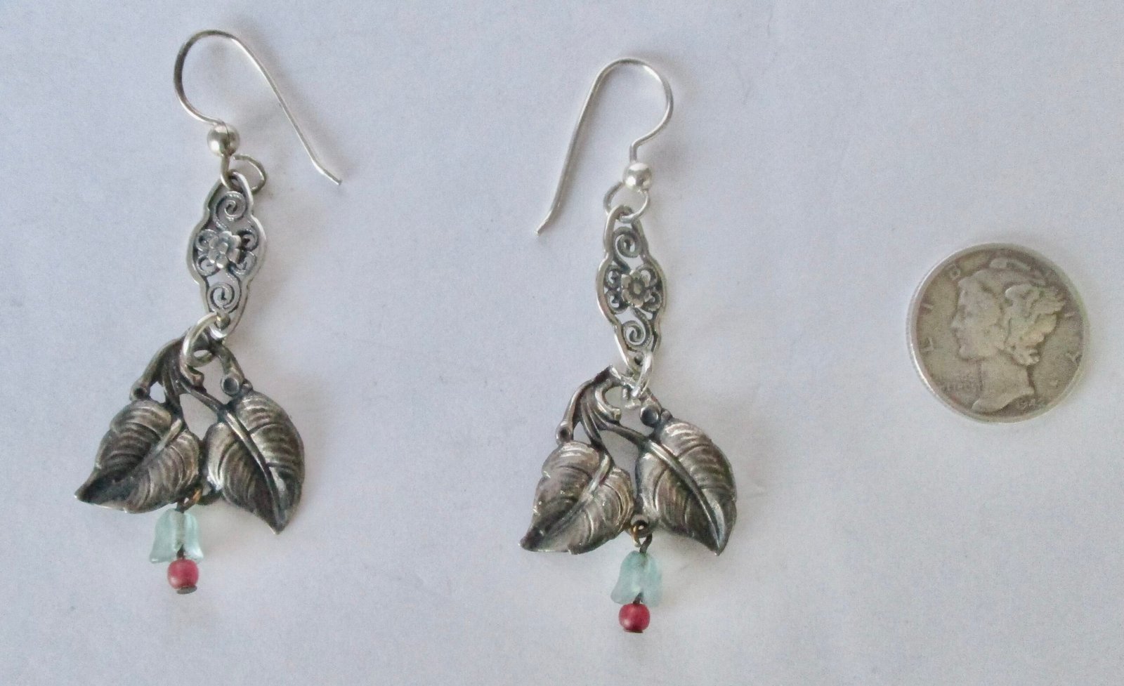 Each earring measures 2 1/4 inches long with ear wire x 3/4 inch wide, at its widest.   Total weight for the pair is a comfortable 5.2 g.     3.3 dwt