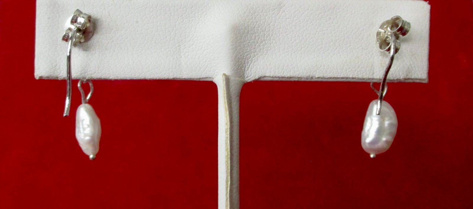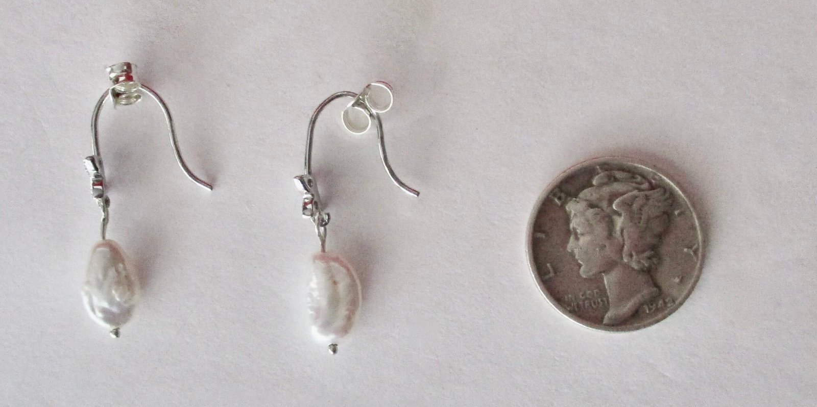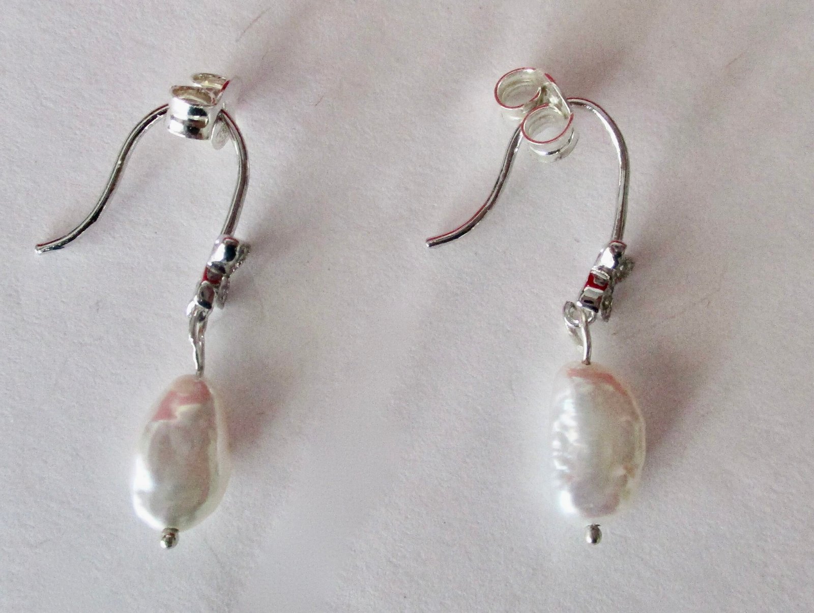 Pair of Vintage Small Sterling Silver, Clear Rhinestone and Rice Pearl Earrings.   Circa. 1990             American