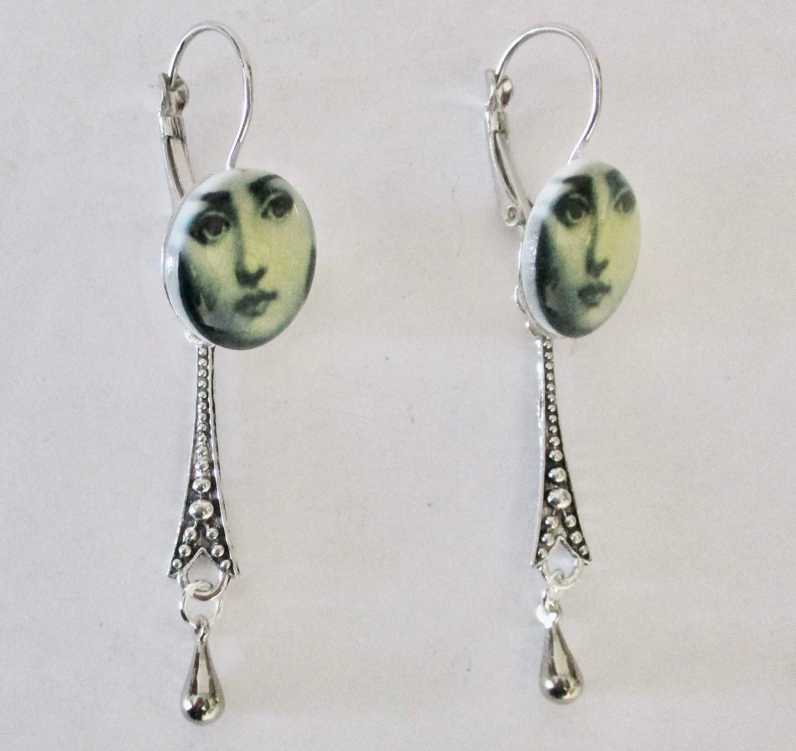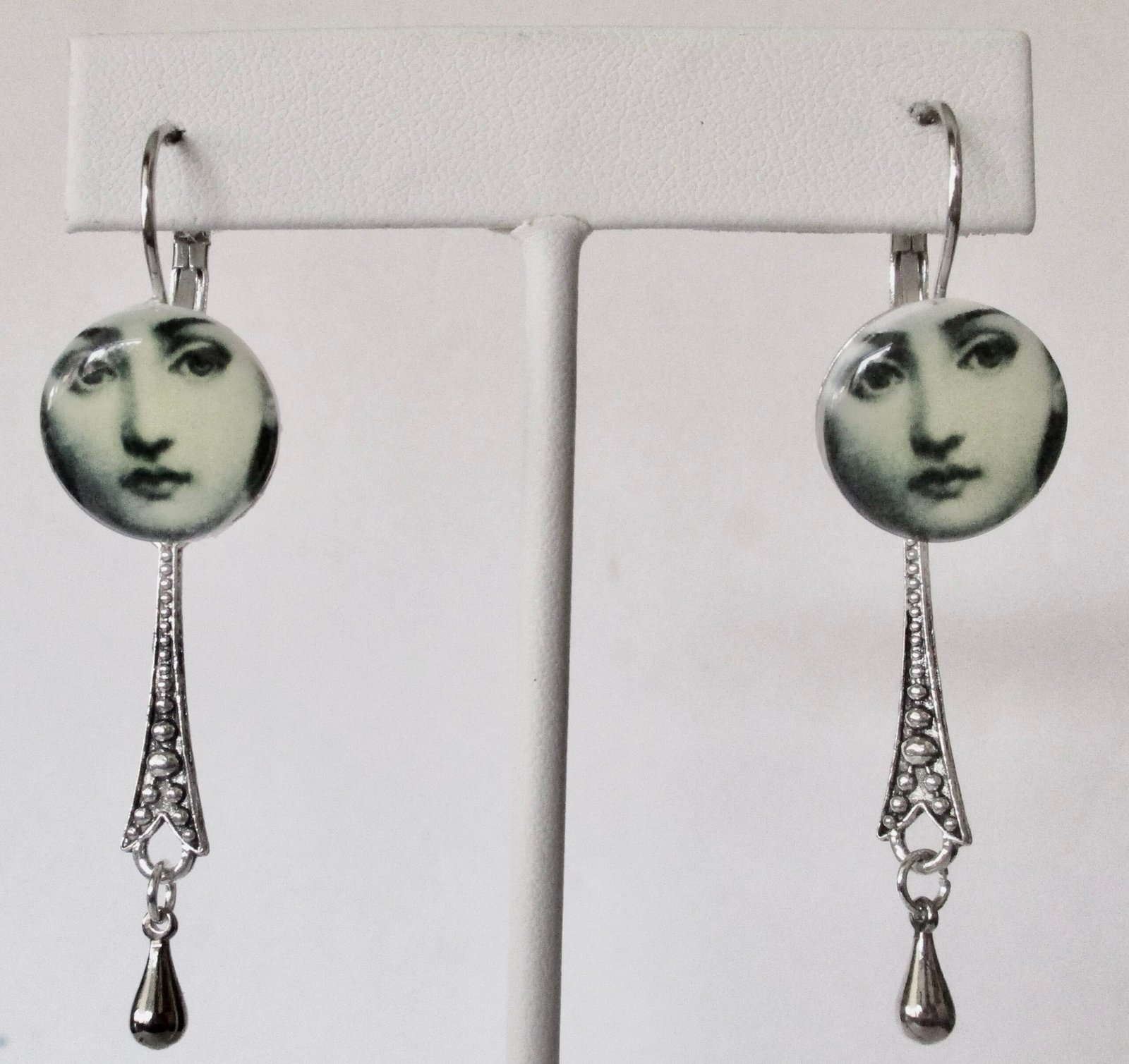 Pair of Vintage Portrait Earrings With Hand Stenciling and Omega Backs Circa. 1980 American
