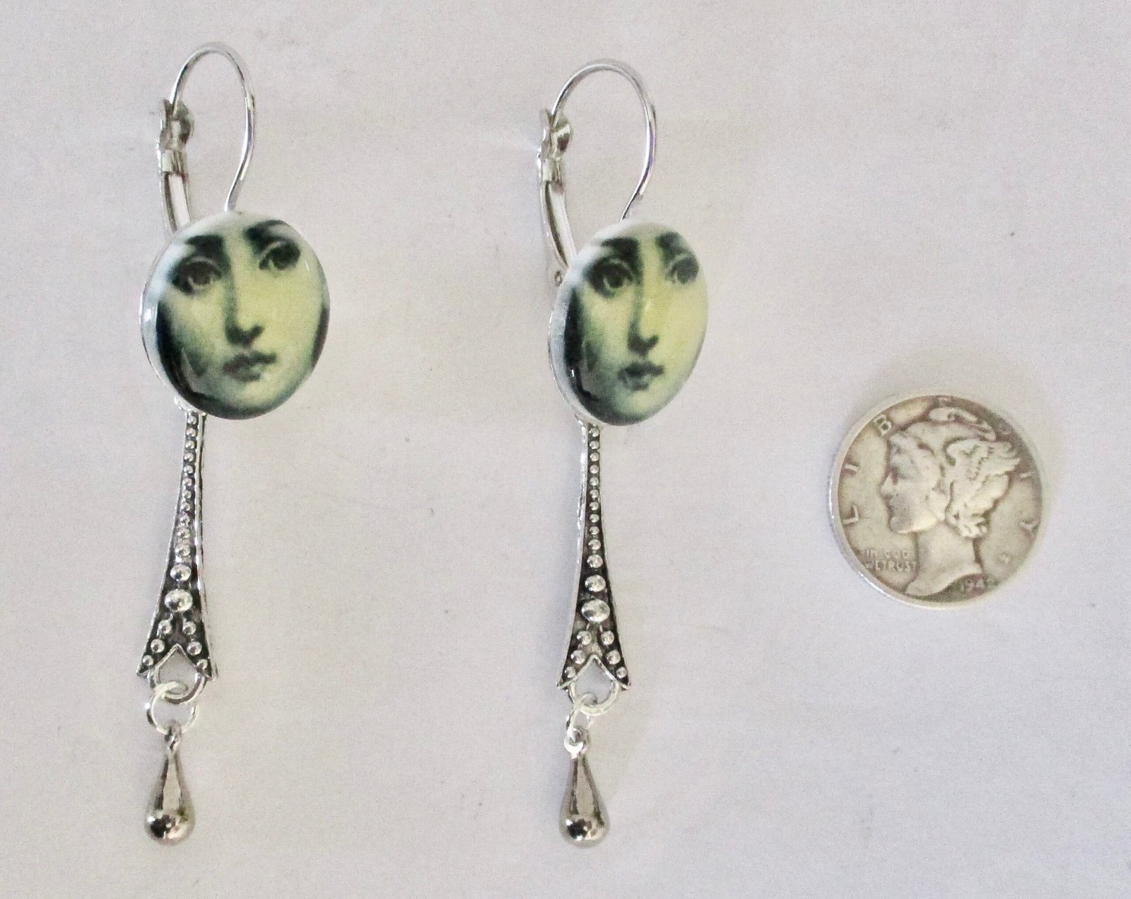 Hand-stenciled earrings on porcelain. Omega back ear wires. (Omega’s are the finest ear wires). New-old stock. The earrings were made in the 1980’s. but never worn or sold