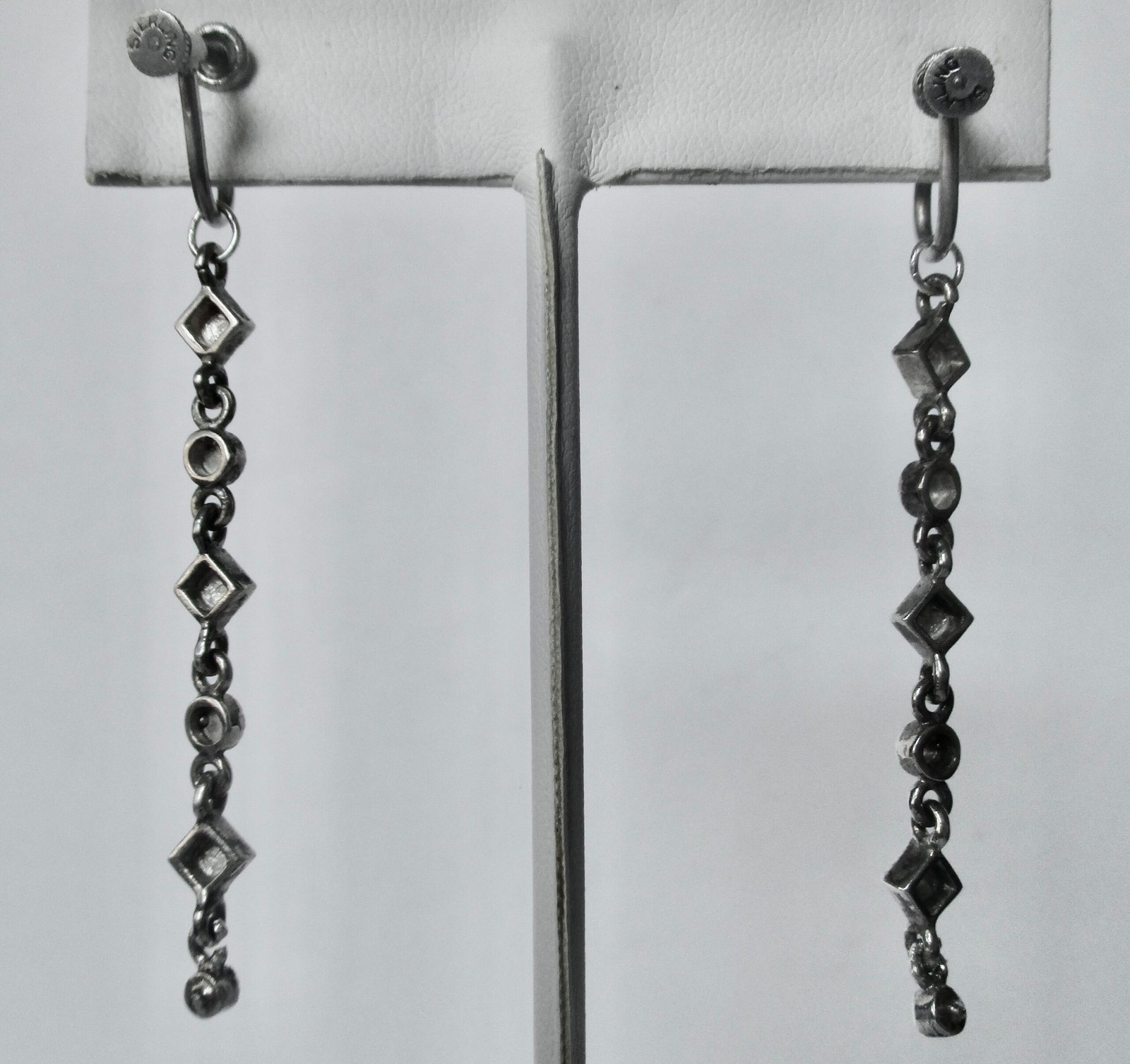 Each earring is 2 1/2 inches long with ear wire. Only 3/32 inch wide with a weight of 6.2 g. 3,9 dwt. for the pair