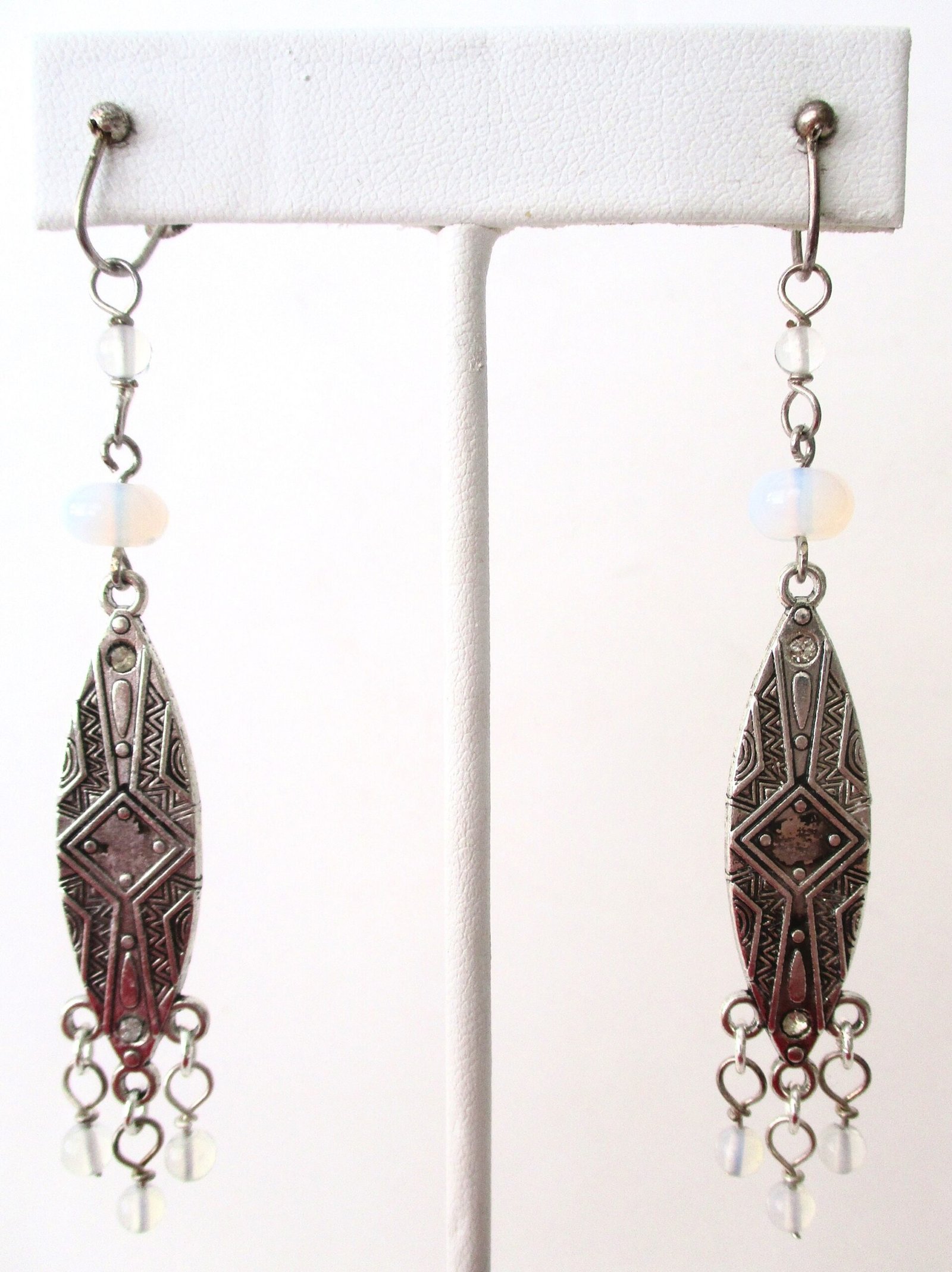 Pair of Vintage Sterling Silver & Moonstone Earrings Circa. 1990 American