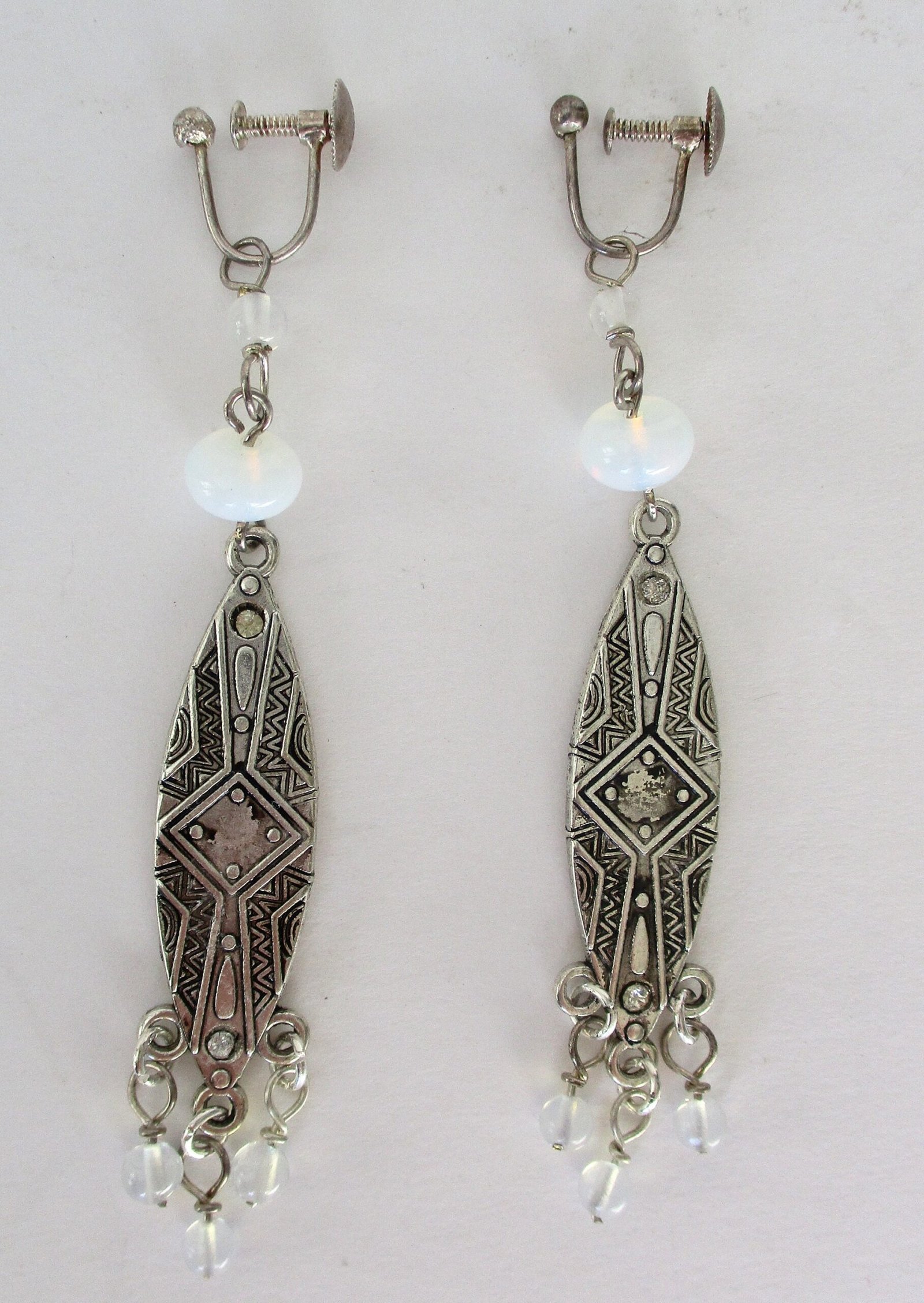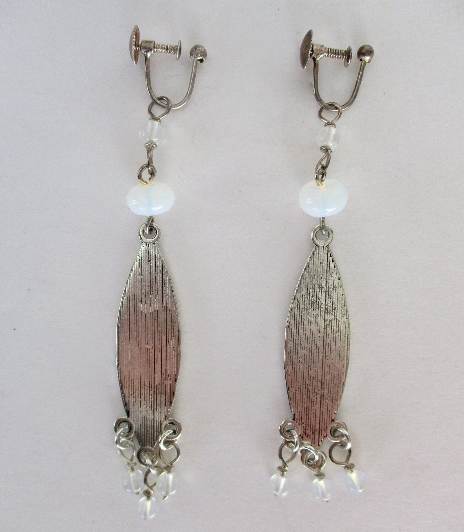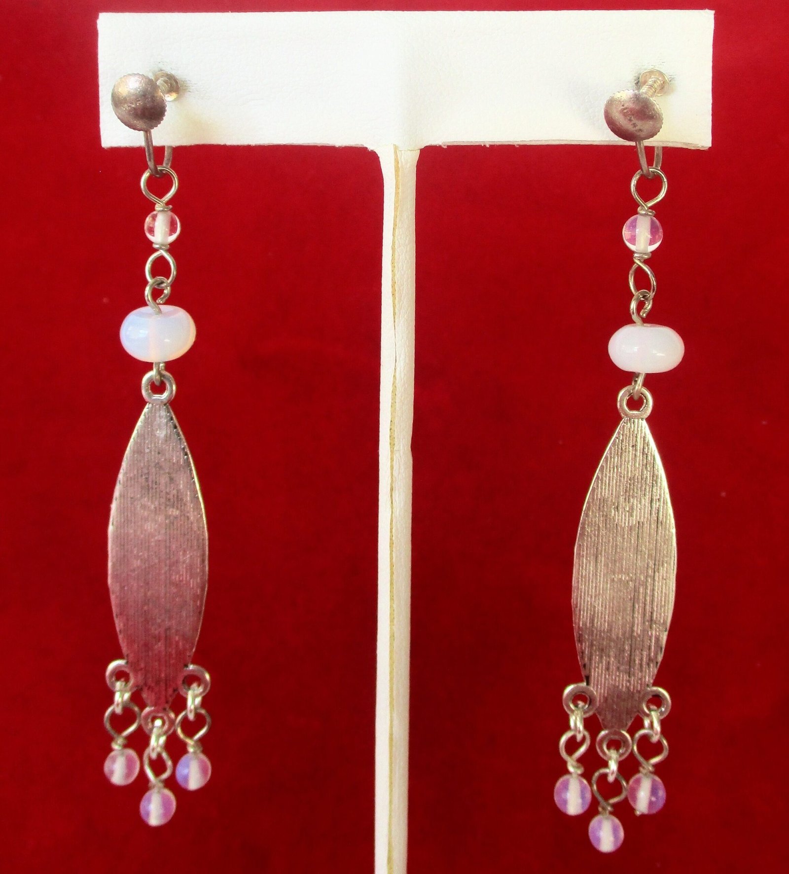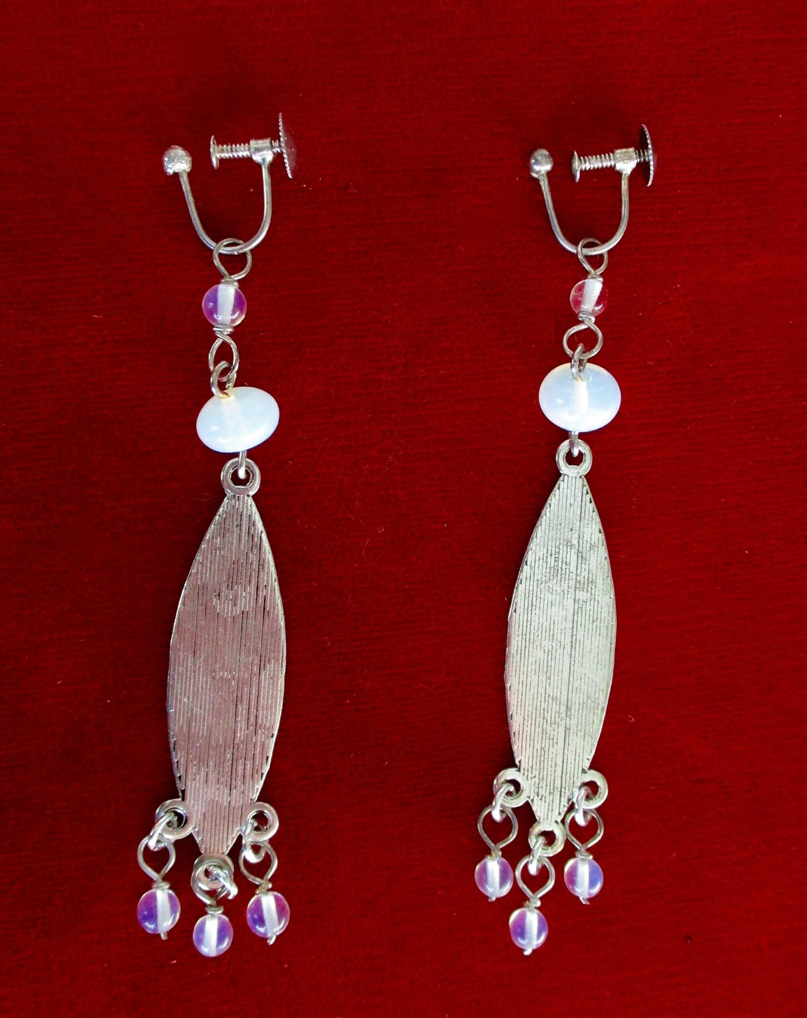 Sterling silver screw backs (marked sterling) Smooth, non faceted natural moonstones A light and comfortable pair They sway when walking