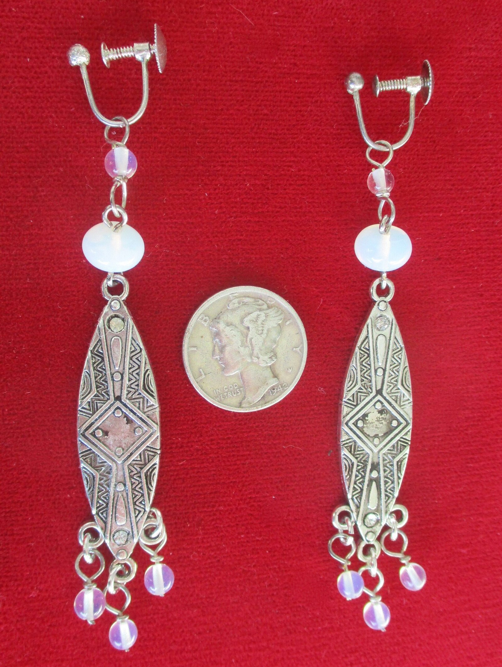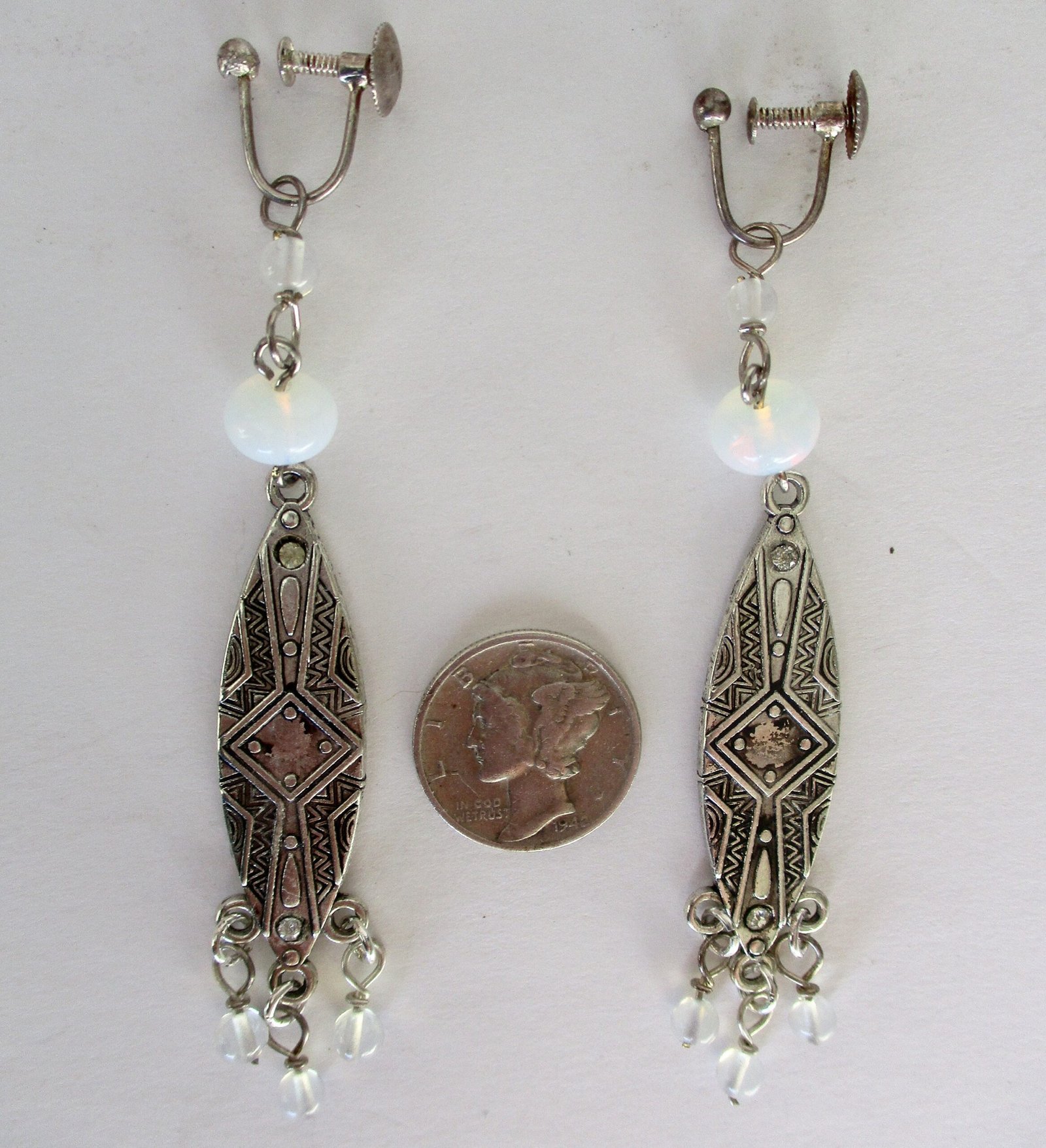 Each earring measures 3 1/4 inches long with ear wire 1/2 inch wide, at their widest Total weight is 8.5 g. 5.5 dwt