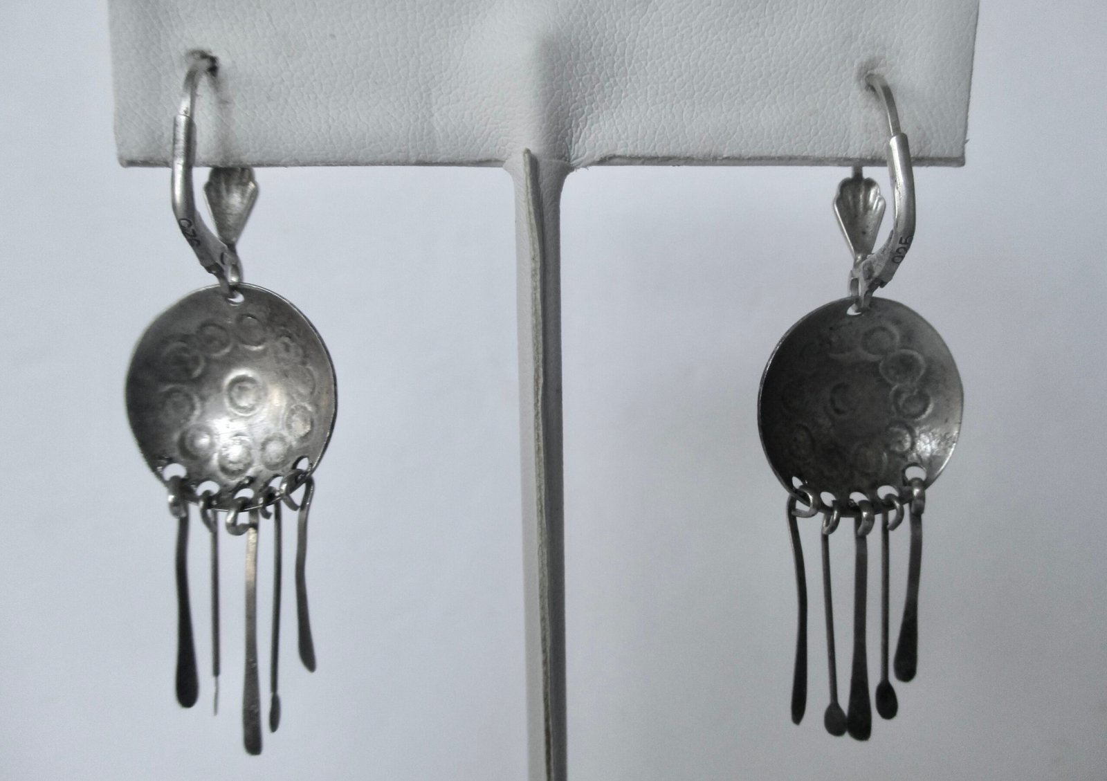 Lovely pair of American Indian mid-20th century sterling silver earrings.    Marked “925” sterling.   The pair looks hardly worn