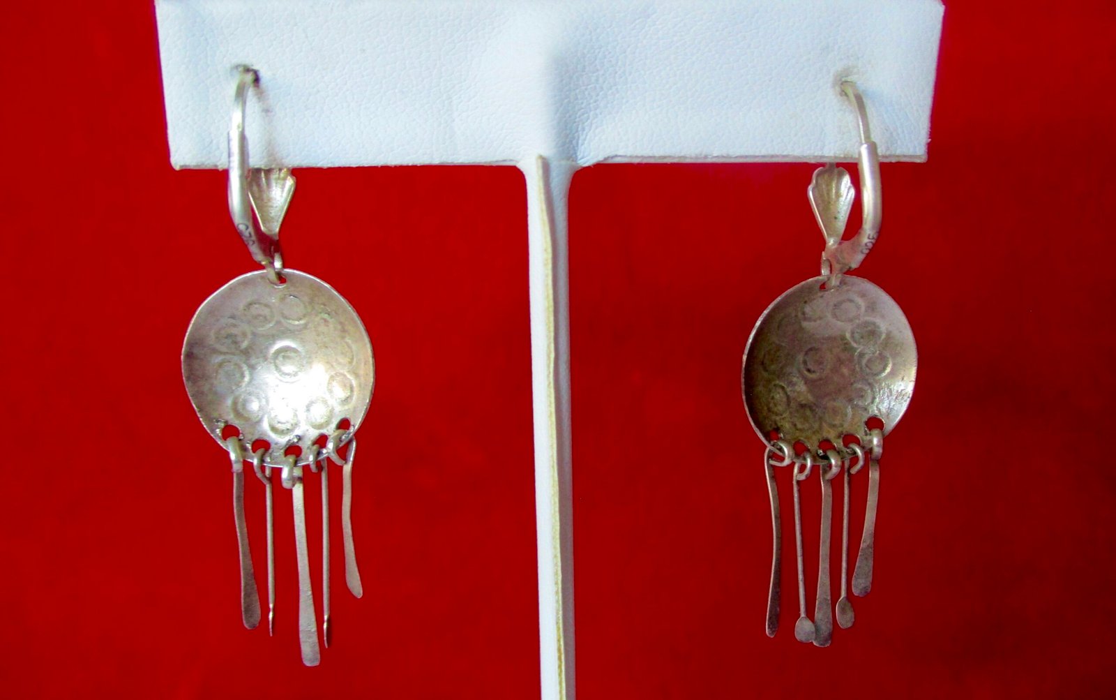 Each earring measures 2 inches long with lever back ear wire.   3/4 inch wide.  Total weight for the pair is a comfortable 4.2 g.      2.7 dwt