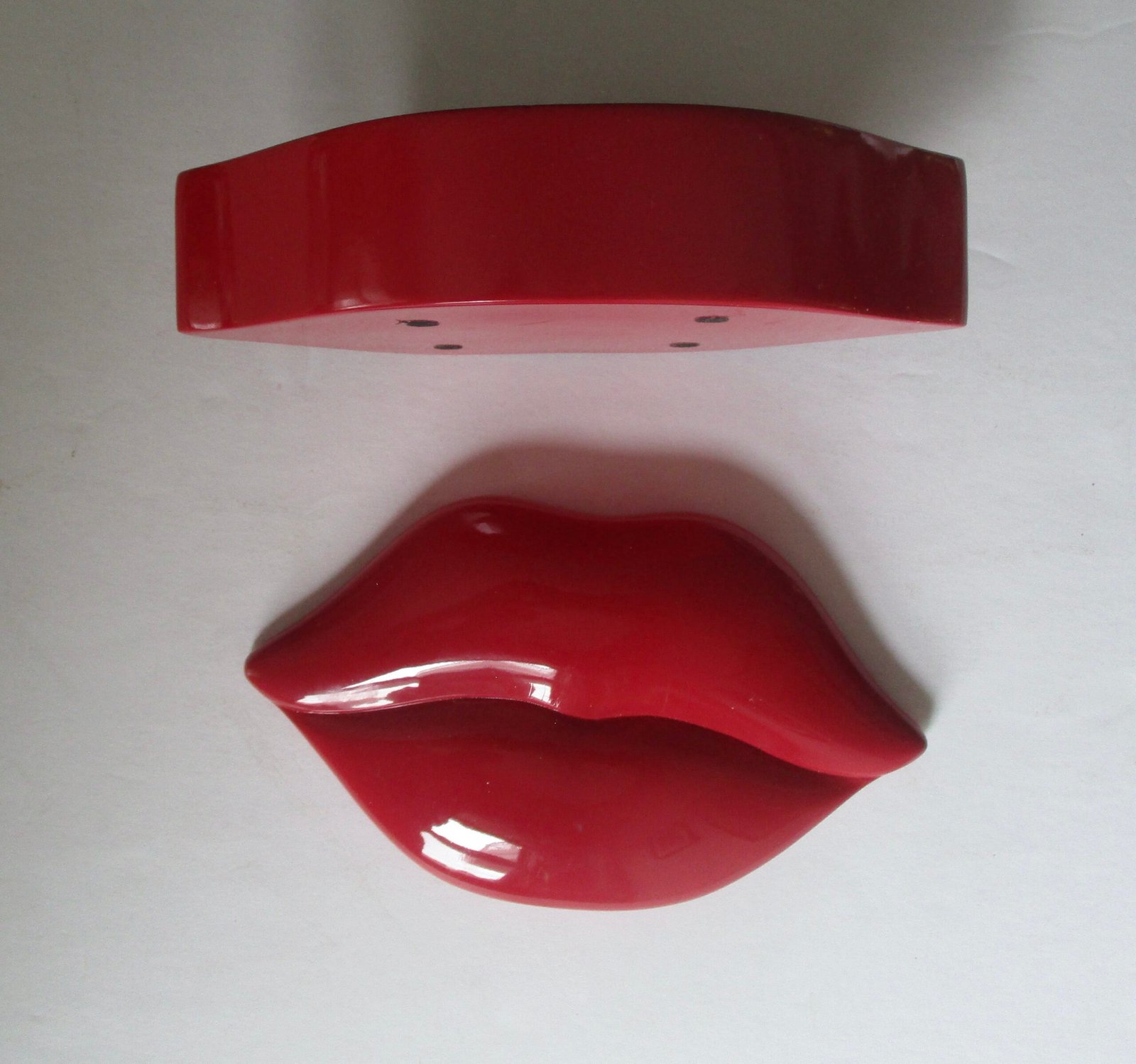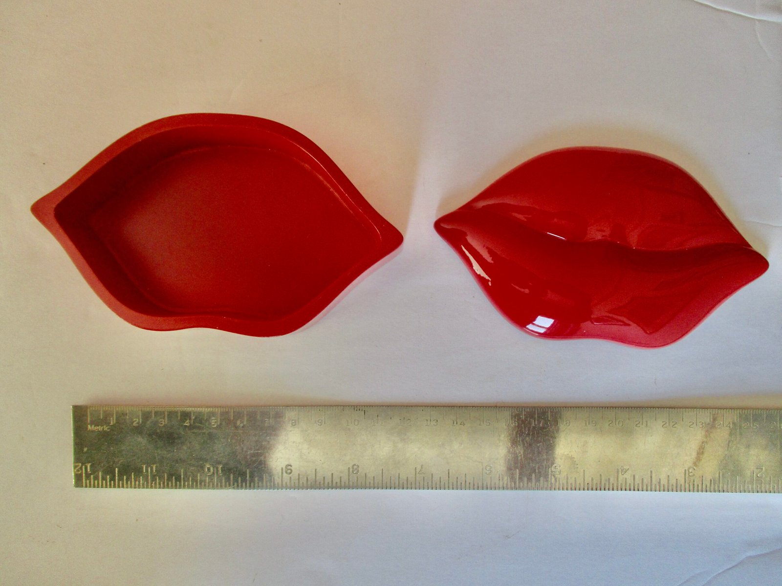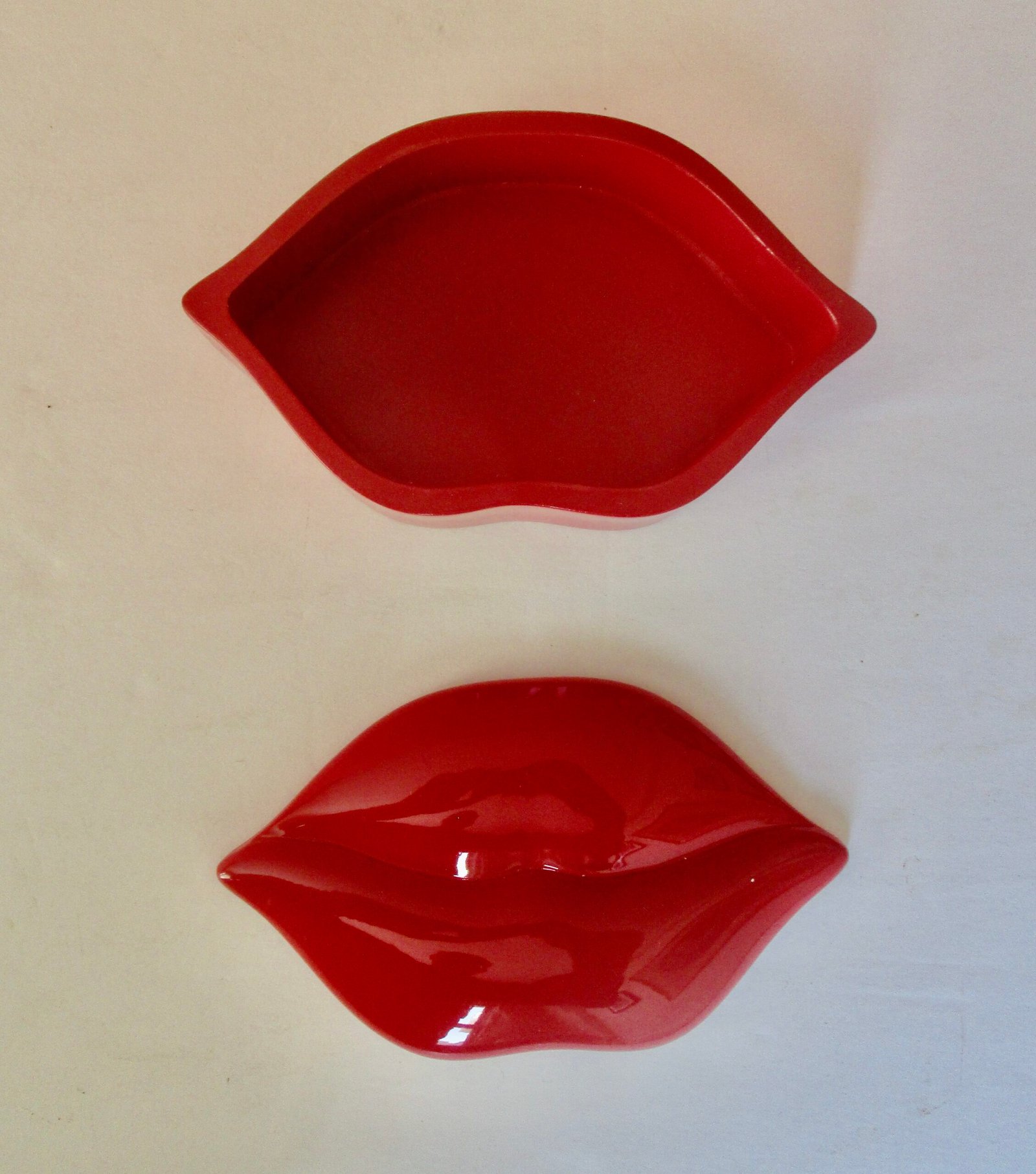 Vintage 5-Inch Wide High Red Gloss Lips Trinket or Jewelry Box. Circa. 1980. American